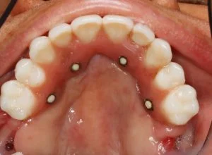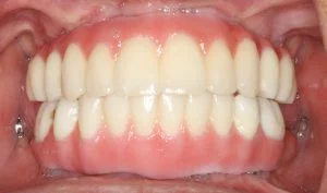 A 50 year old patient presented with frustrations of a loose fitting denture. He was socially withdrawn because he was afraid the denture would fall out while talking. He could not enjoy his favorite meals. Lastly he hated the feeling of the denture covering the roof of his mouth. He was young and wanted to enjoy the rest of his life with permanent teeth.
